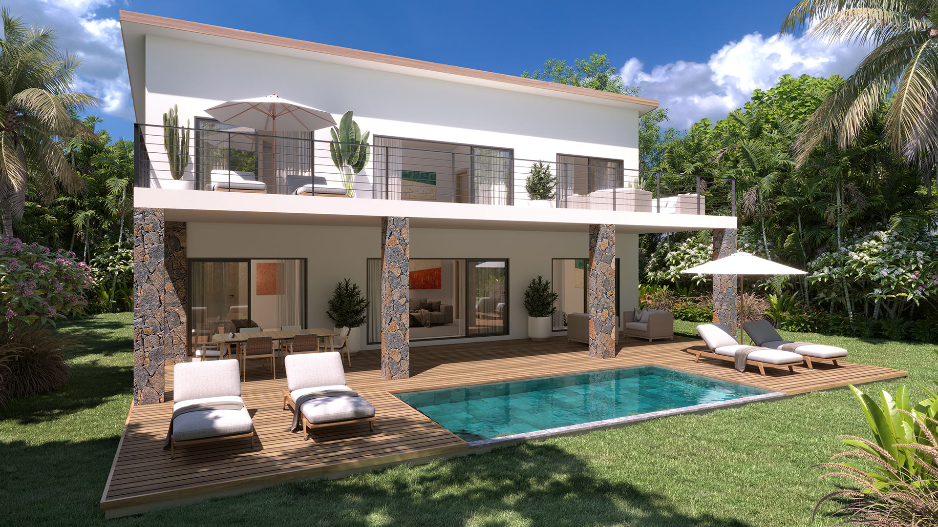 Les villas type B sont construites en ossature métallique par Houseinnovation.